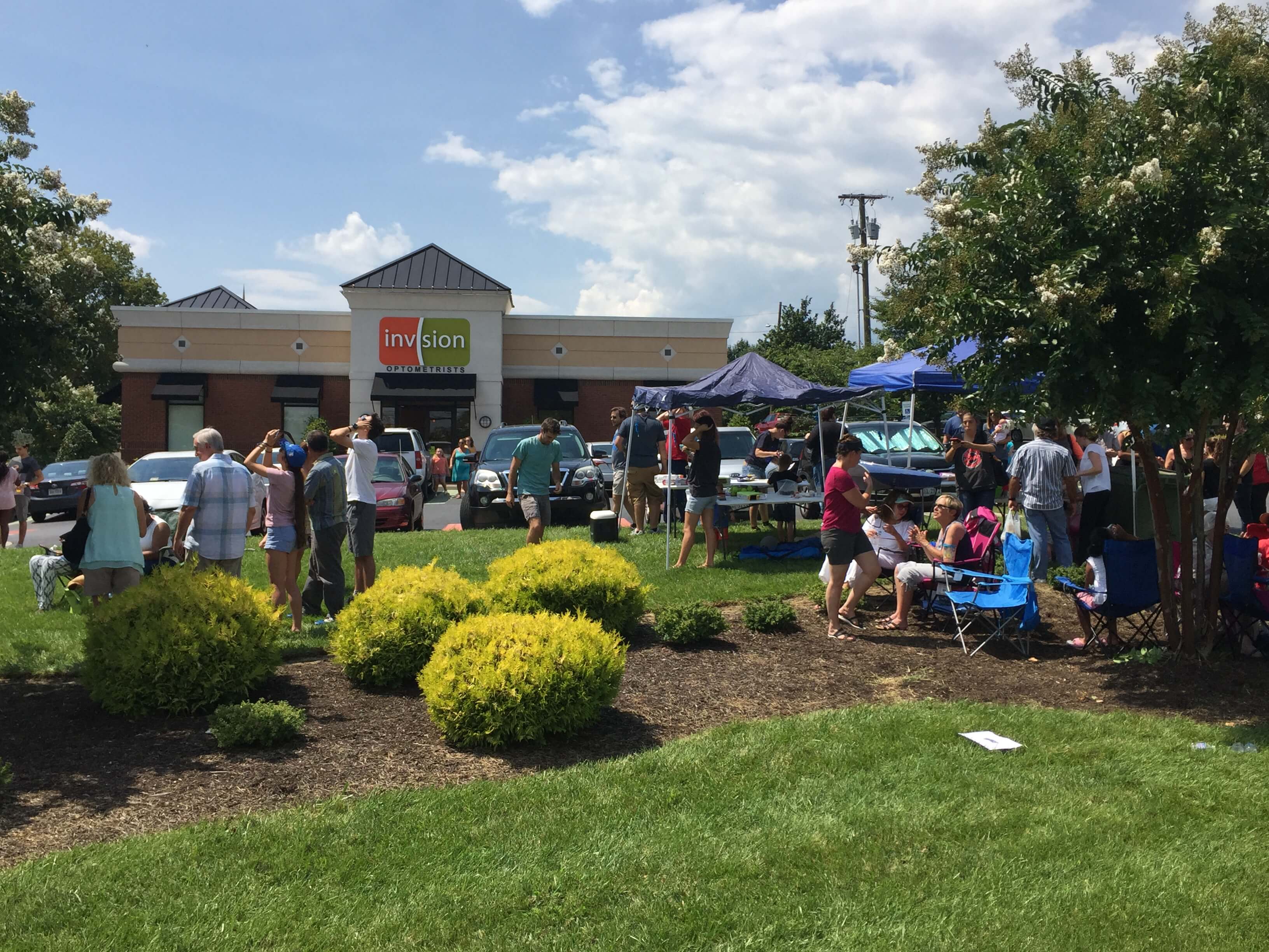 Posted August 29, 2017Our patients, friends, and social media followers know how to have a GOOD TIME! That is evident by the fact that over 200 people attended our Solar Eclipse viewing parties hosted at our Christiansburg and Salem locations. While we are happy that everyone enjoyed the festivities of this amazing natural phenomenon we were even more overjoyed to know how serious people took the eye safety considerations of this event. We had over 500 calls for safety viewing glasses in the two weeks leading to the eclipse–we tallied 143 calls in the three days prior at our Christiansburg office alone. Thank you for making sure you protected the precious gift of sight by only viewing the coast-to-coast solar eclipse with ISO certified safety glasses. It seems only fitting we share images from the event–enjoy this gallery.